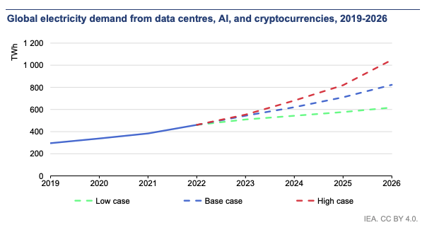lisäksi kasvavat energiavaatimukset eivät näytä laantumisen merkkejä. kansainvälisen energiajärjestön (IEA) ennusteen mukaan maailmanlaajuinen sähkönkysyntä kasvaa 460 terawattitunnista (TWh) vuonna 2022 1000 TWh:iin vuoteen 2026 mennessä.