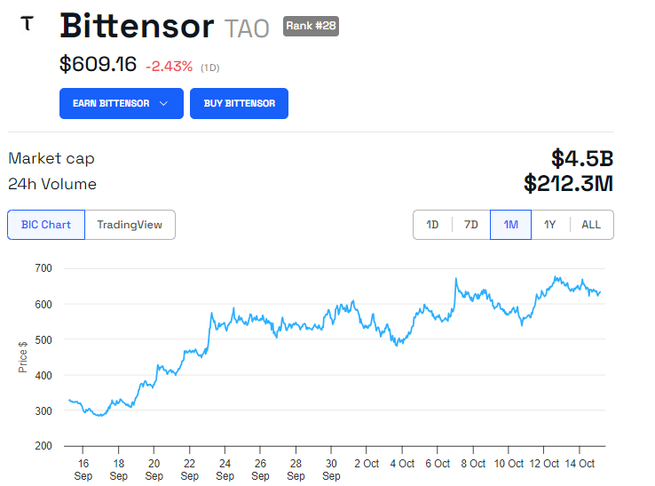 Vaikka token on jo nähnyt merkittäviä voittoja, Deutscher neuvoo ostamaan notkahduksien aikana. Kirjoitushetkellä TAO:n hinta on 609,16 dollaria.