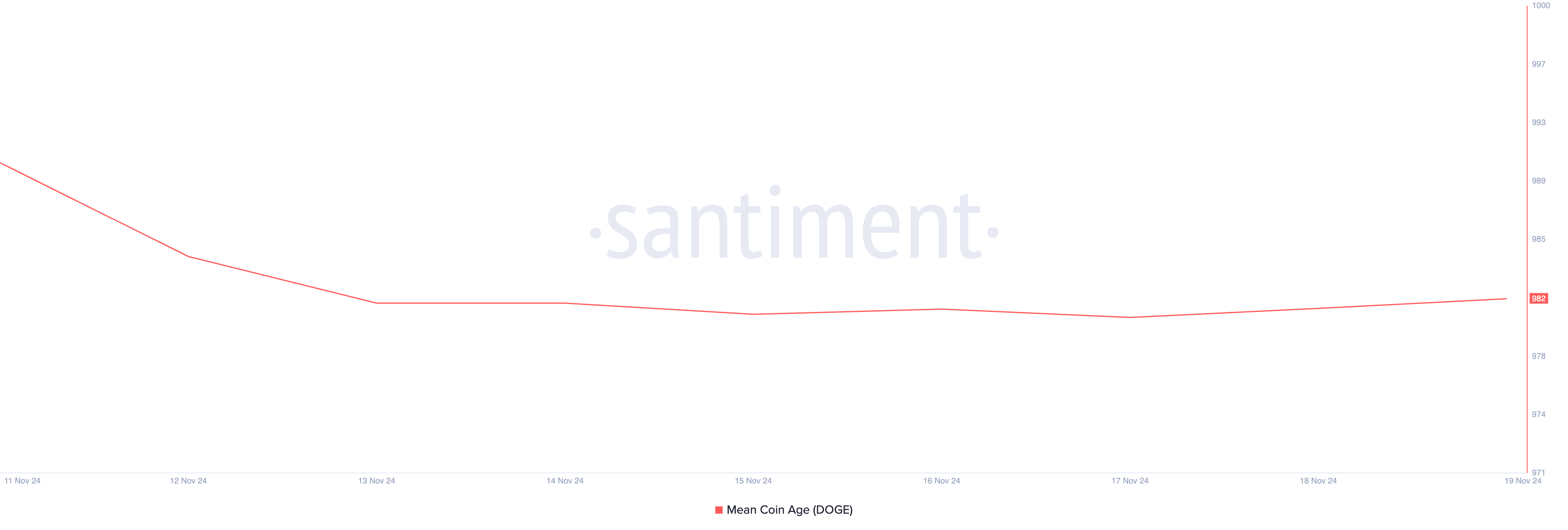 BeInCrypto:n arvio Dogecoinin ketjusuorituskyvystä on paljastanut sen keskimääräisen kolikko-iän laskeneen viime viikon aikana. Santimentin mukaan se on laskenut 1 % viimeisen seitsemän päivän aikana.