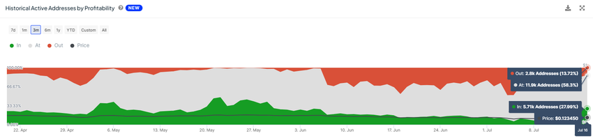 Tämä ajaa DOGEn haltijat myymään omistuksensa voittoa varten HODLingin sijaan. Kun tarkastellaan aktiivisia osoitteita kannattavuuden mukaan, voidaan huomata, että voiton sijoittajat kasvavat.
