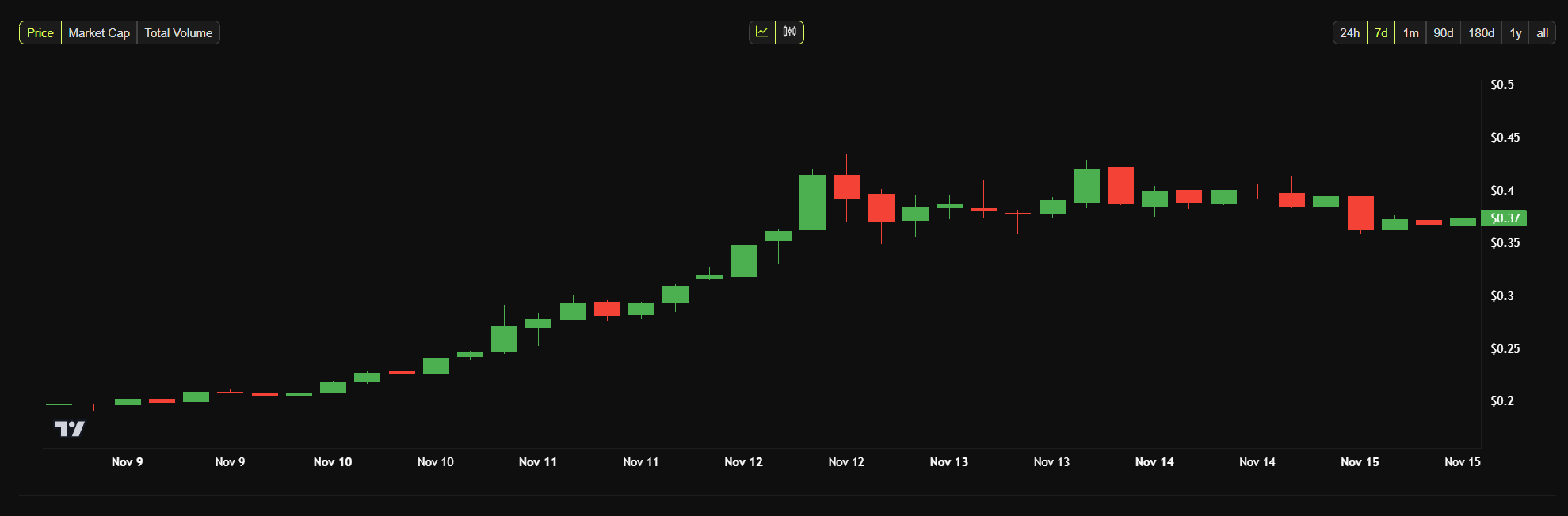 Sen jälkeen Dogecoin on kokenut merkittävän hintarallin, suoriutuen paremmin kuin useimmat altcoinit härkämarkkinoilla. DOGE on noussut yli 130% vaalitulosten jälkeen ja saavuttanut korkeimman arvonsa toukokuusta 2021 lähtien.
