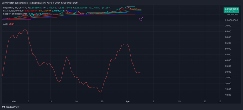 WIF on kokenut tänä vuonna yli 2 000 %:n huiman nousun, ja siitä on tullut Solanan suurin meemikolikko ylivoimaisesti ja se on jopa ylittänyt Arbitrumin markkina-arvoltaan. EMA-viivojen viimeaikainen lähentyminen viittaa kuitenkin mahdolliseen trendimuutokseen tai konsolidointijaksoon, mikä osoittaa, että markkinat saattavat valmistautua uuteen nousuun.