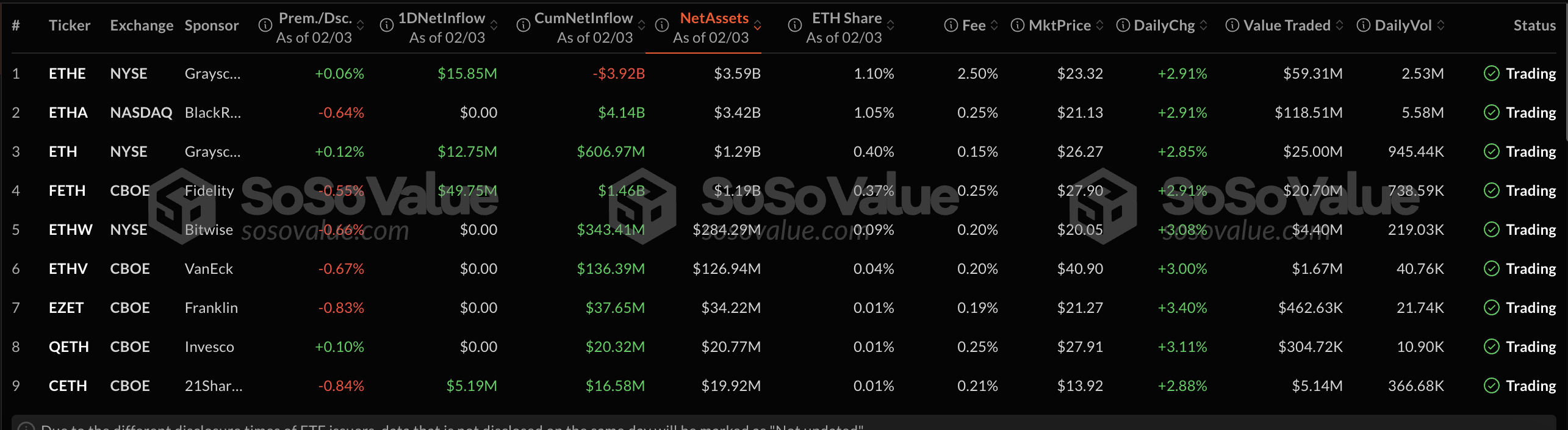 Yhdysvaltain Ethereum ETF:t saavuttivat ennätysvolyymin maanantaina, kun sijoittajat ostivat notkahduksen huolimatta markkinoiden laskuista. Yhdeksän ETF:ää saavuttivat yhteensä 1,5 miljardin dollarin kaupankäyntivolyymin, ja uudet sijoittajat toivat 84 miljoonan dollarin sijoitukset.