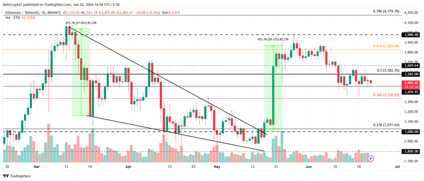 Jos purkautuminen kuitenkin epäonnistuu ja altcoin pysyy konsolidoituna, ETH voi jatkaa liikkumista sivuttain. Jos laajempien markkinoiden laskusuuntaus johtaisi pudotukseen alle 3 459 dollarin tuen, nouseva teesi mitätöitäisiin. ETH voisi siten pudota 38,2 prosentin Fib-linjalle 3 336 dollariin.
