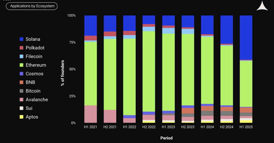 Vastakohtana Solanan ekosysteemi on siirtänyt painopisteensä rakenteelliseen startup-tukeen, mikä auttaa Solana-verkostoa nousemaan suosituimmaksi kodiksi uusille Web3-perustajille.