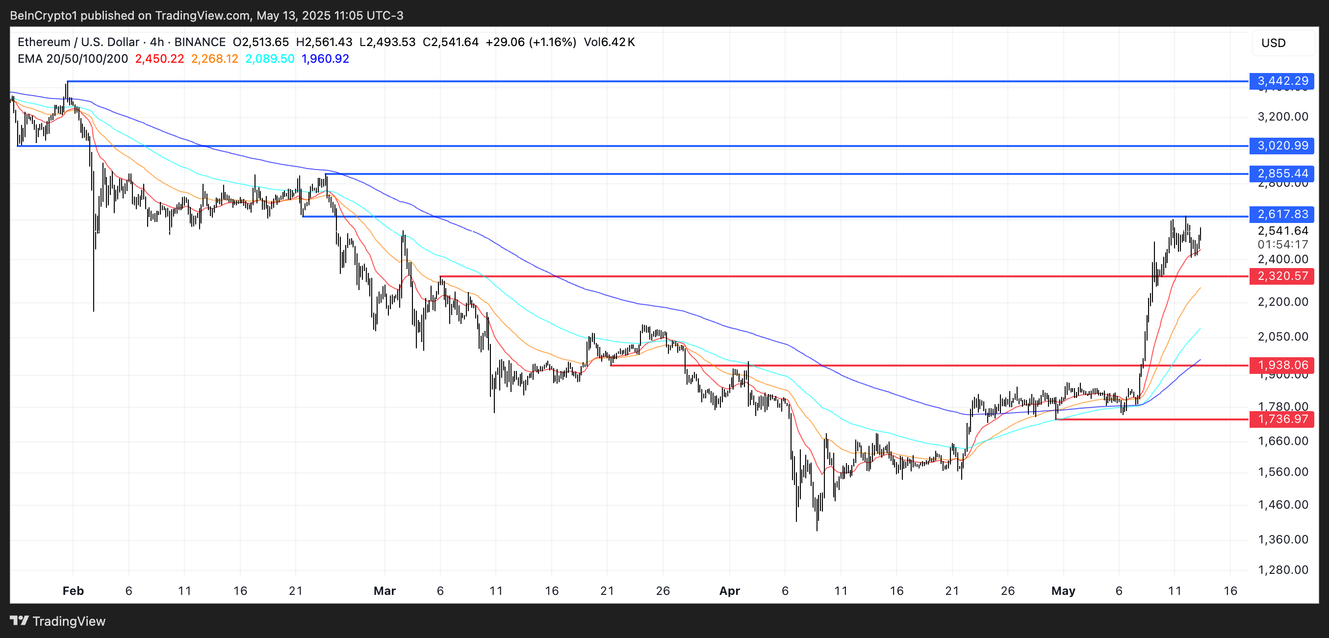 ETH testasi äskettäin 2 617 dollarin vastustason, mutta ei onnistunut murtamaan sitä.