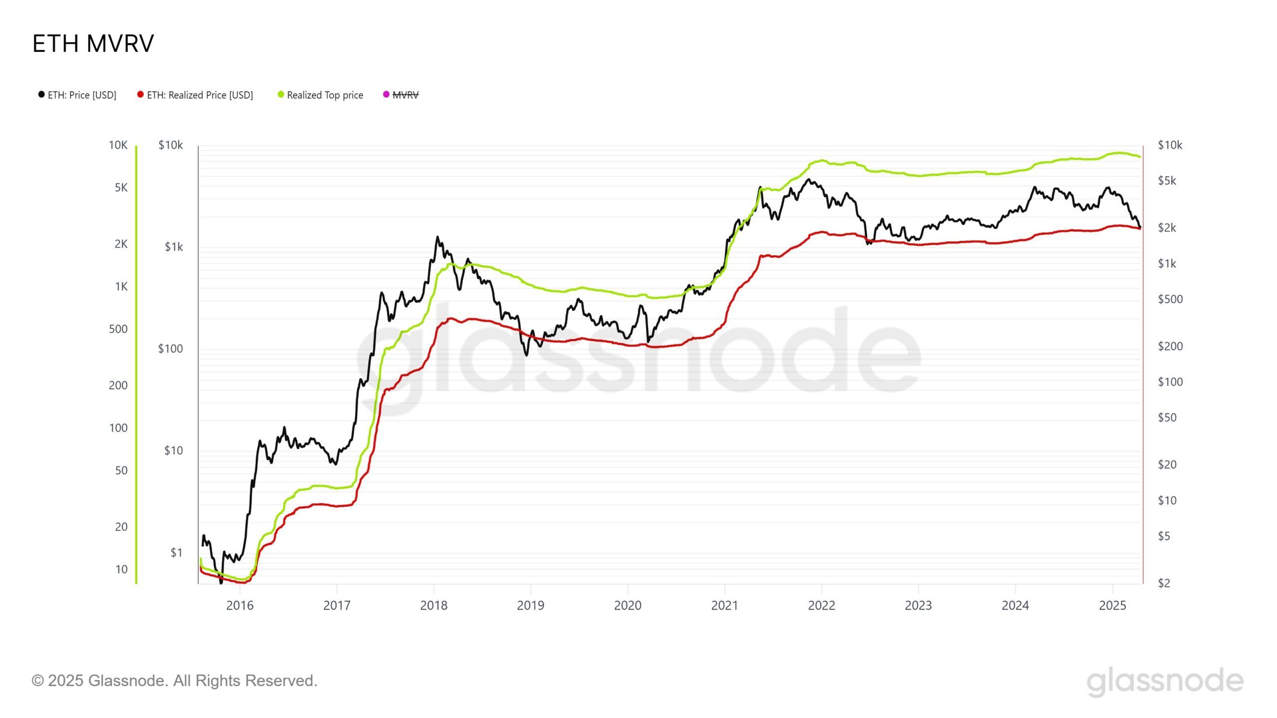 Venturefounder korosti toista tärkeää tunnuslukua: Ethereumin nykyinen markkina-arvo on laskenut vastaamaan sen ketjussa toteutunutta arvoa. Realisoitu arvo heijastaa keskimääräistä hintaa, jolla kaikki ETH-tokenit viimeksi liikkuivat. Kun markkinahinta laskee tälle tasolle, se usein merkitsee harvinaista ostoikkunaa. Historiallisesti tällaiset hetket edeltävät vahvoja hintaralleja.