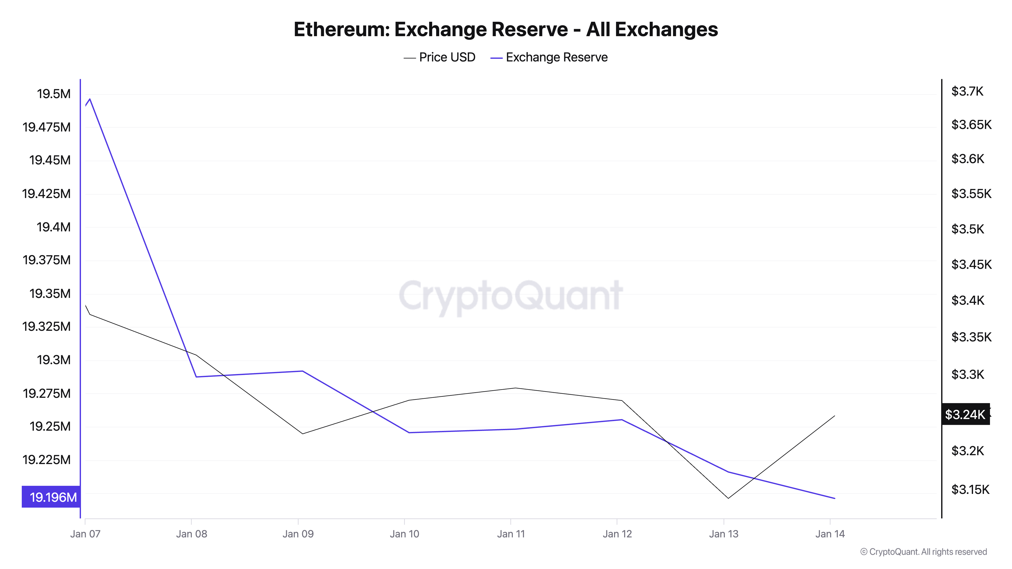 Lisäksi ETH:n pörssivara on pudonnut kahden kuukauden alimmalle tasolle, 19,19 miljoonaan ETH:iin, ja pörssilompakoissa pidetty määrä on vähentynyt 2 % viime viikolla. Tämä vähennys viittaa siihen, että markkinaosapuolet vähentävät myyntipainetta ja valitsevat pitää kiinni ETH-tokeneistaan.