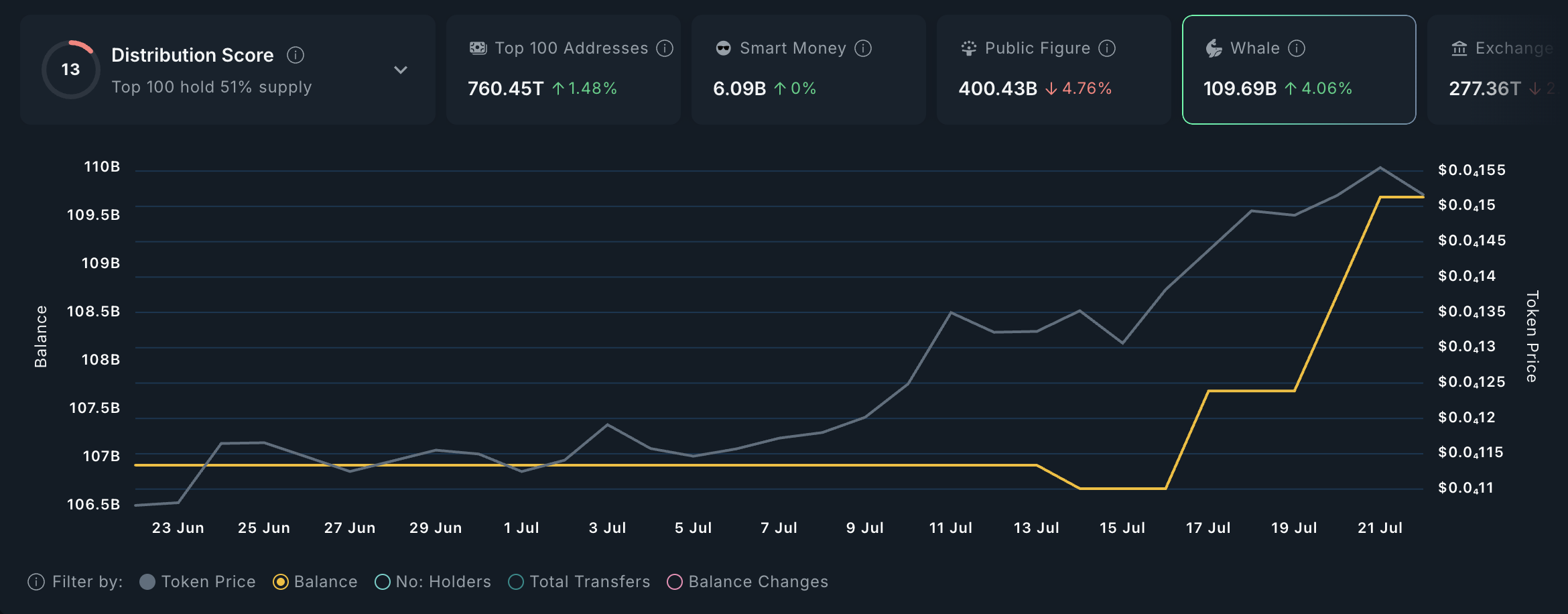 Tätä kirjoitettaessa tämä SHIB-sijoittajien ryhmä omistaa 109,69 miljardia tokenia.