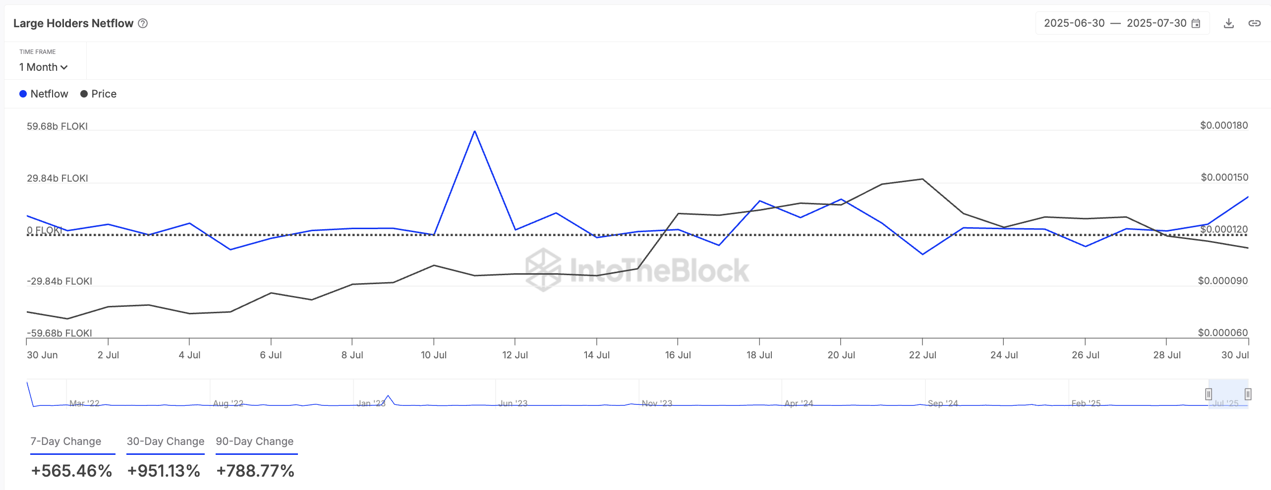 Vaikka voittojen kotiuttaminen on sittemmin vetänyt hintaa alas 21 %, valas-aktiivisuus ei ole hidastunut. Sen sijaan suuret toimijat näyttävät pitävän notkahdusta ostopaikkana, ja suurten haltijoiden nettovirta on noussut yli 500 % viimeisen seitsemän päivän aikana.