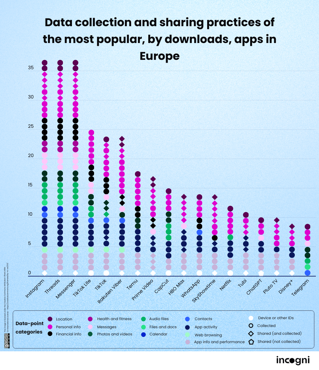 Incognin tutkimus keskittyi Eurooppaan, ja sen johtopäätökset sovelluspohjaisesta tiedonkeruusta ovat varsin hämmästyttäviä. Vaikka mantereella on näennäisesti tiukat digitaaliset yksityisyyslait, nämä ulkomaiset alustat hallitsevat suurta osaa tiedoista.