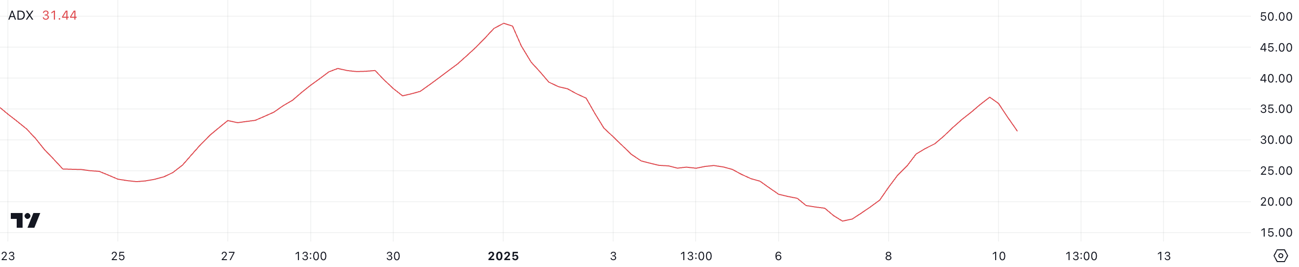 FTM:n ADX:n viimeaikainen lasku heijastaa aiemman laskutrendin heikkenemistä, mikä viittaa mahdolliseen siirtymiseen konsolidaatiovaiheeseen sen sijaan, että karhumomentum jatkuisi, kun FTM:n hinta korjautui noin 20 % viimeisen 7 päivän aikana.