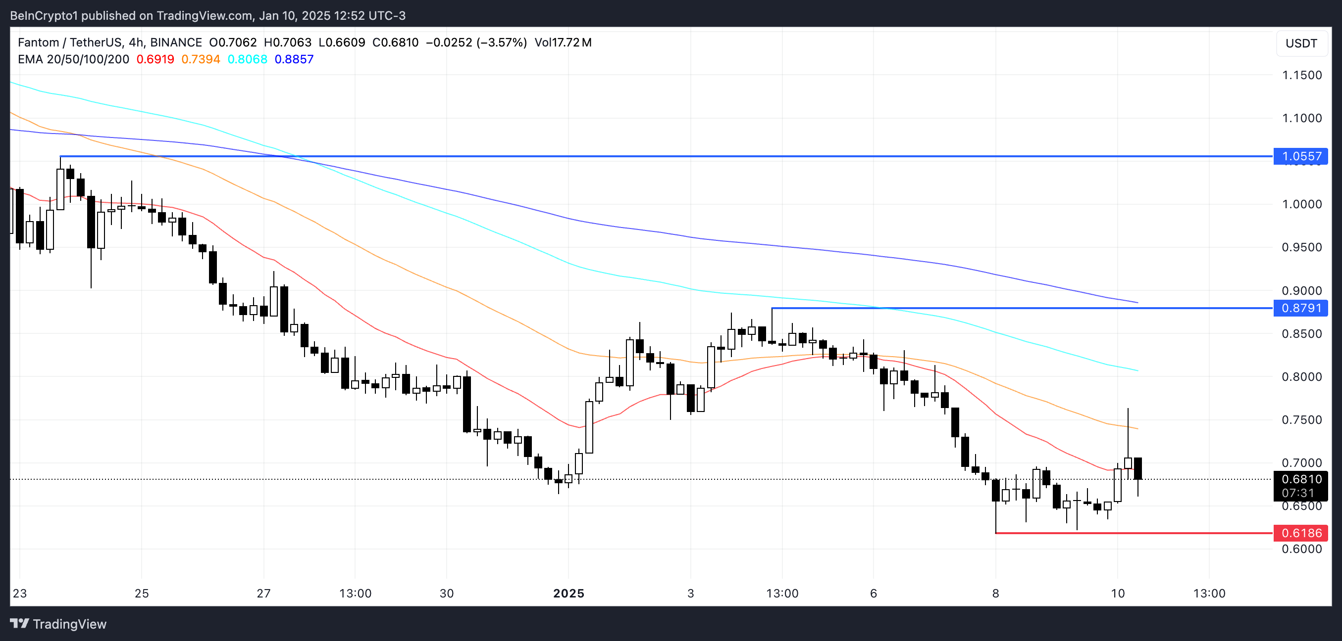 Jos Fantom-hinta jatkaa nykyistä laskutrendiään, se saattaa testata kriittistä tukitasoa 0,618 dollarissa. Tämän tuen alittaminen voisi voimistaa myyntipainetta, mahdollisesti työntäen FTM:n hinnan alle 0,60 dollarin tai jopa niinkin alas kuin 0,50 dollaria.