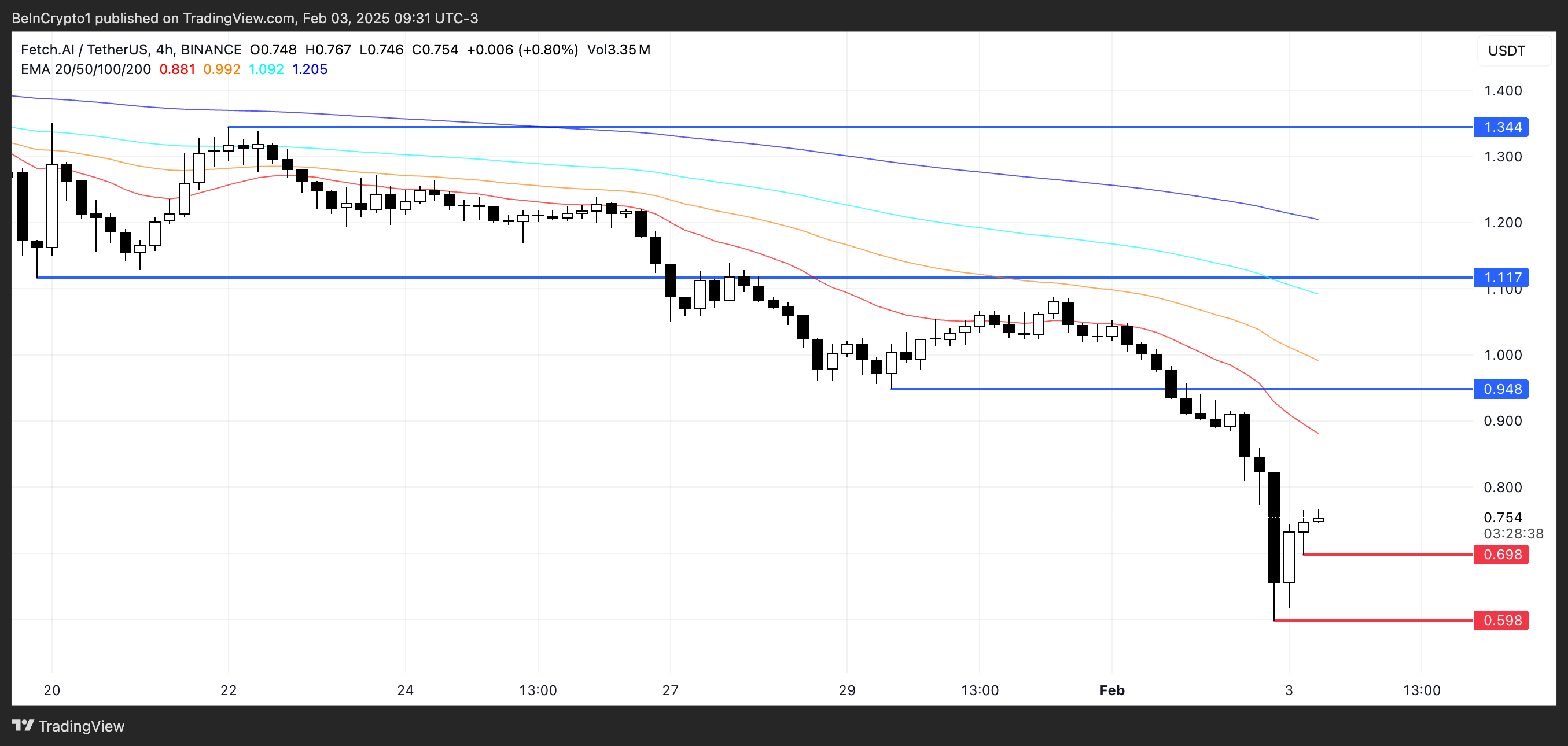 FET-hinta on ollut jyrkässä laskussa, pudoten yli 40 % viimeisen 30 päivän aikana ja toiset 20 % viime viikolla. Tämä jyrkkä korjaus seuraa laajempaa heikkoutta tekoälytokeneissa, ja tekniset indikaattorit viittaavat jatkuvaan karhumarkkinatunnelmaan.