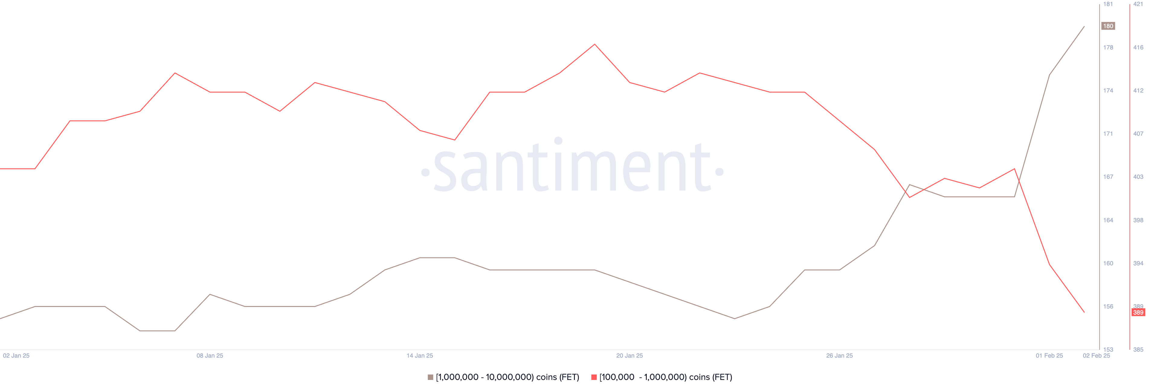 FET-valaat ovat antaneet viime aikoina ristiriitaisia signaaleja. Osoitteiden määrä, jotka pitävät 100 000–1 000 000 FET:tä, laski 404:stä 389:ään, kun taas 1 000 000–10 000 000 FET:tä pitävien määrä nousi 166:sta 180:een.