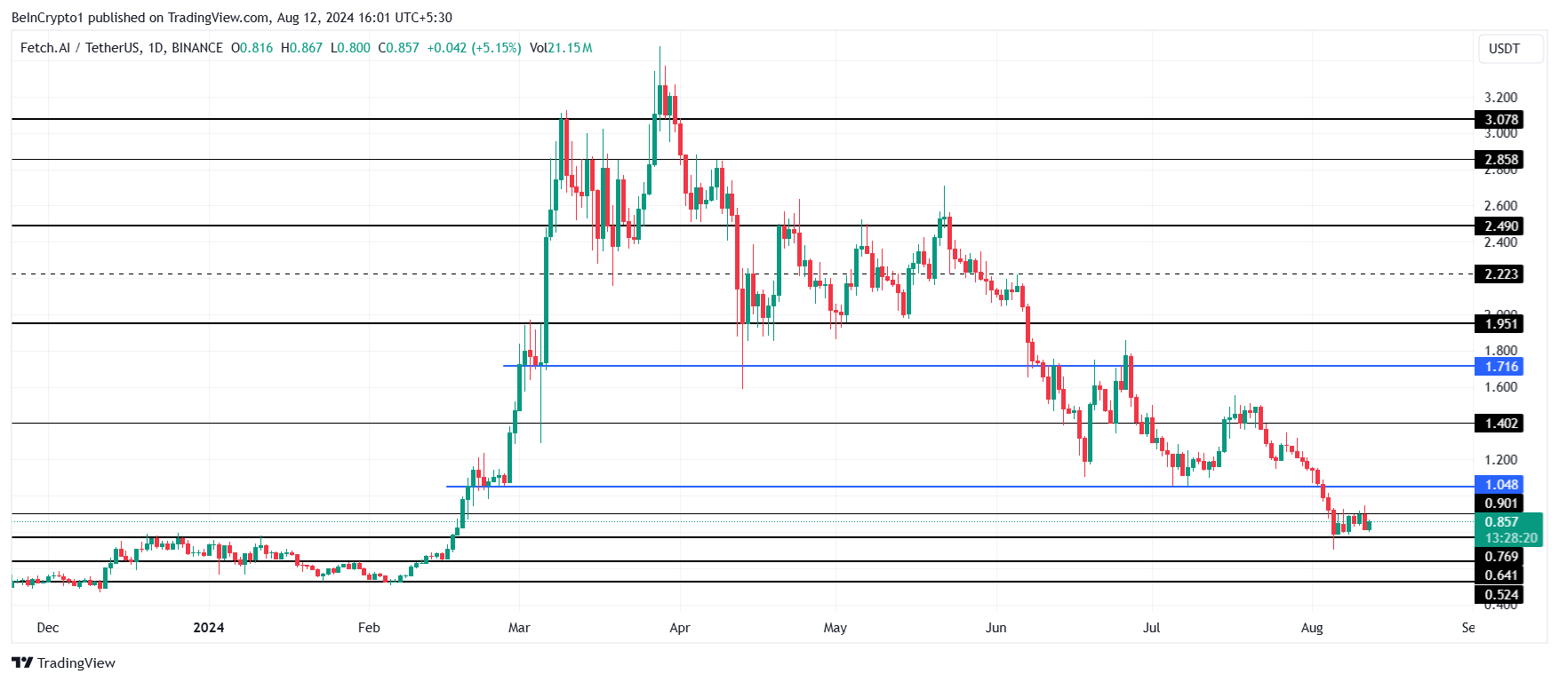 Jos tämä este rikotaan, altcoin kohtaisi vastustusta 1,04 dollarissa, joka tunnetaan tärkeänä tukitasona. Sen kääntäminen mahdollistaisi FET:n edelleen rallin ja muuttaisi mainitun tarjonnan kannattavaksi.
