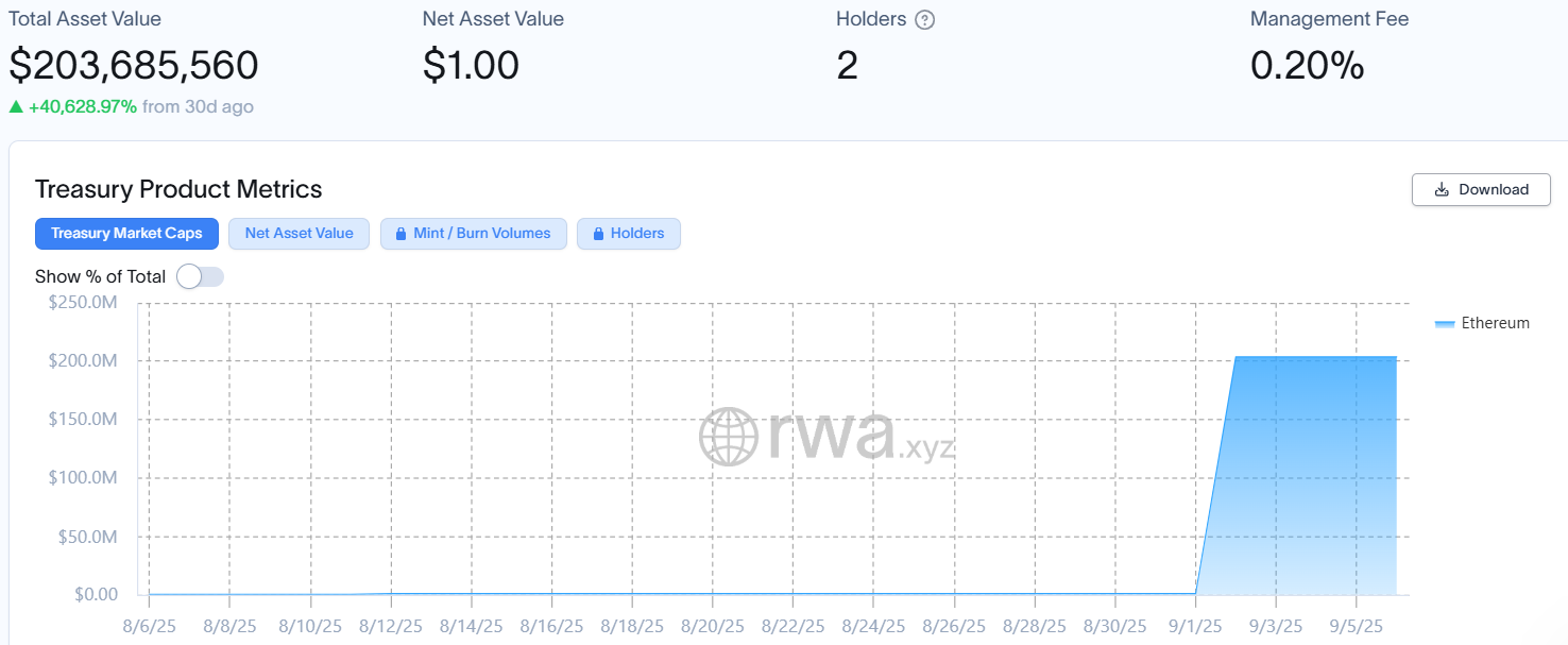 Lehdistöhetkellä sen varat ovat jo nousseet yli 200 miljoonaan dollariin, vaikka osallistuminen on edelleen rajallista. Nykyiset tiedot osoittavat, että rahastolla on vain kaksi haltijaa—yksi noin miljoonan dollarin tokeneilla ja toinen hallinnoi loppuosaa.