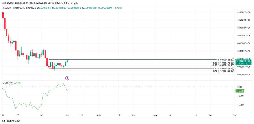 FLOKIn laskeva Chaikin Money Flow (CMF), samalla kun sen hinta nousee, viittaa siihen, että sen arvo laskee pian. Tämä indikaattori mittaa, miten raha virtaa omaisuuserään ja sieltä pois.