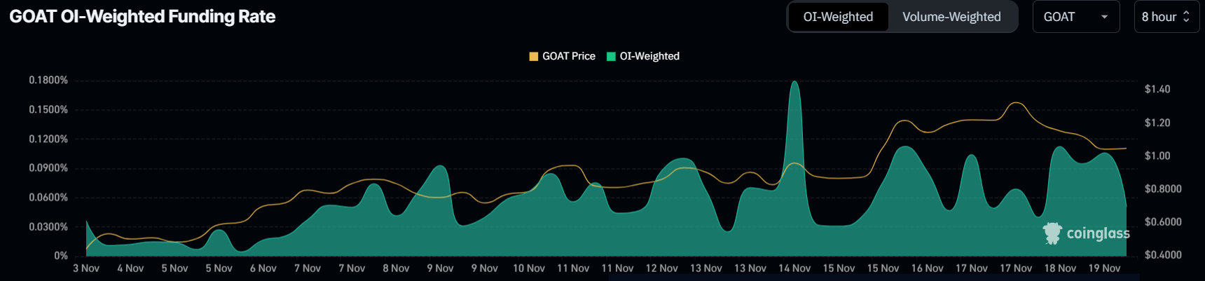 Kuitenkin hintojen lasku on tuonut epävarmuutta sijoittajien keskuuteen, herättäen huolia GOAT:n kyvystä ylläpitää markkina-asemaansa. Rahoitusasteen positiivinen asenne on rohkaiseva, mutta vaatii vahvoja markkinavihjeitä kääntyäkseen merkittäviksi hintavoitoiksi. Kauppiaat tarkkailevat tiiviisti mahdollisia käänteitä.