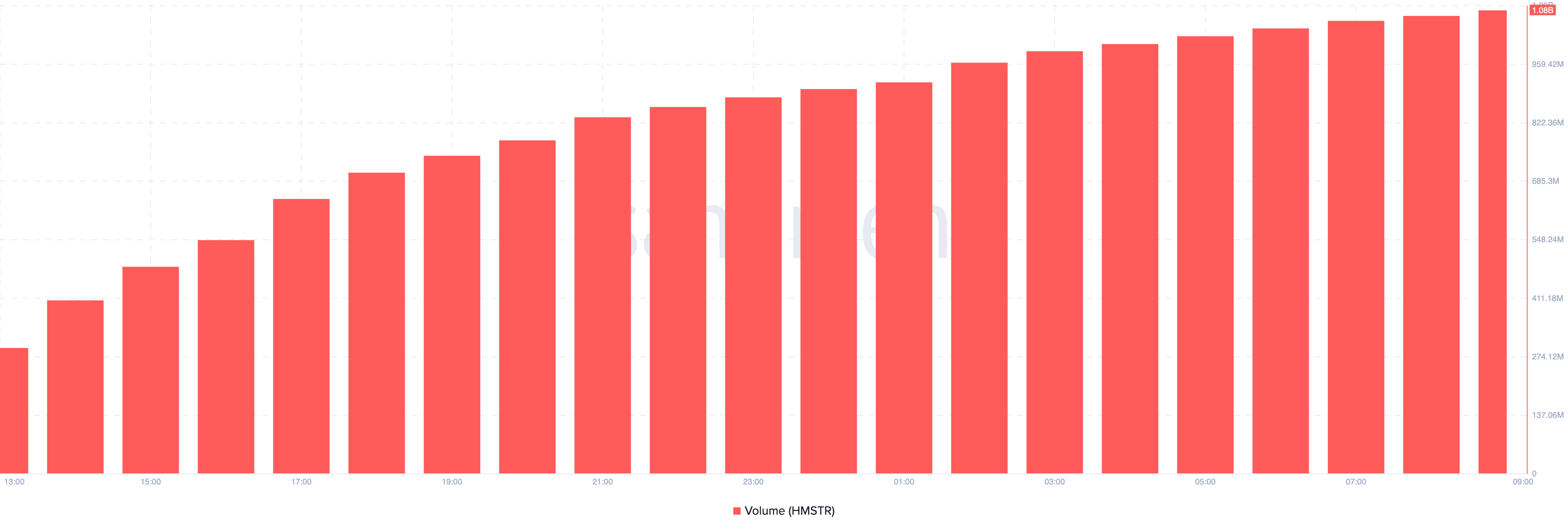 HMSTR:lle nouseva volyymi yhdistettynä laskevaan hintaan on karhumainen merkki, sillä se osoittaa vahvuutta alaspäin kohdistuvaan paineeseen tokenilla. Jos tämä jatkuu, hinta saattaa jatkaa laskuaan.