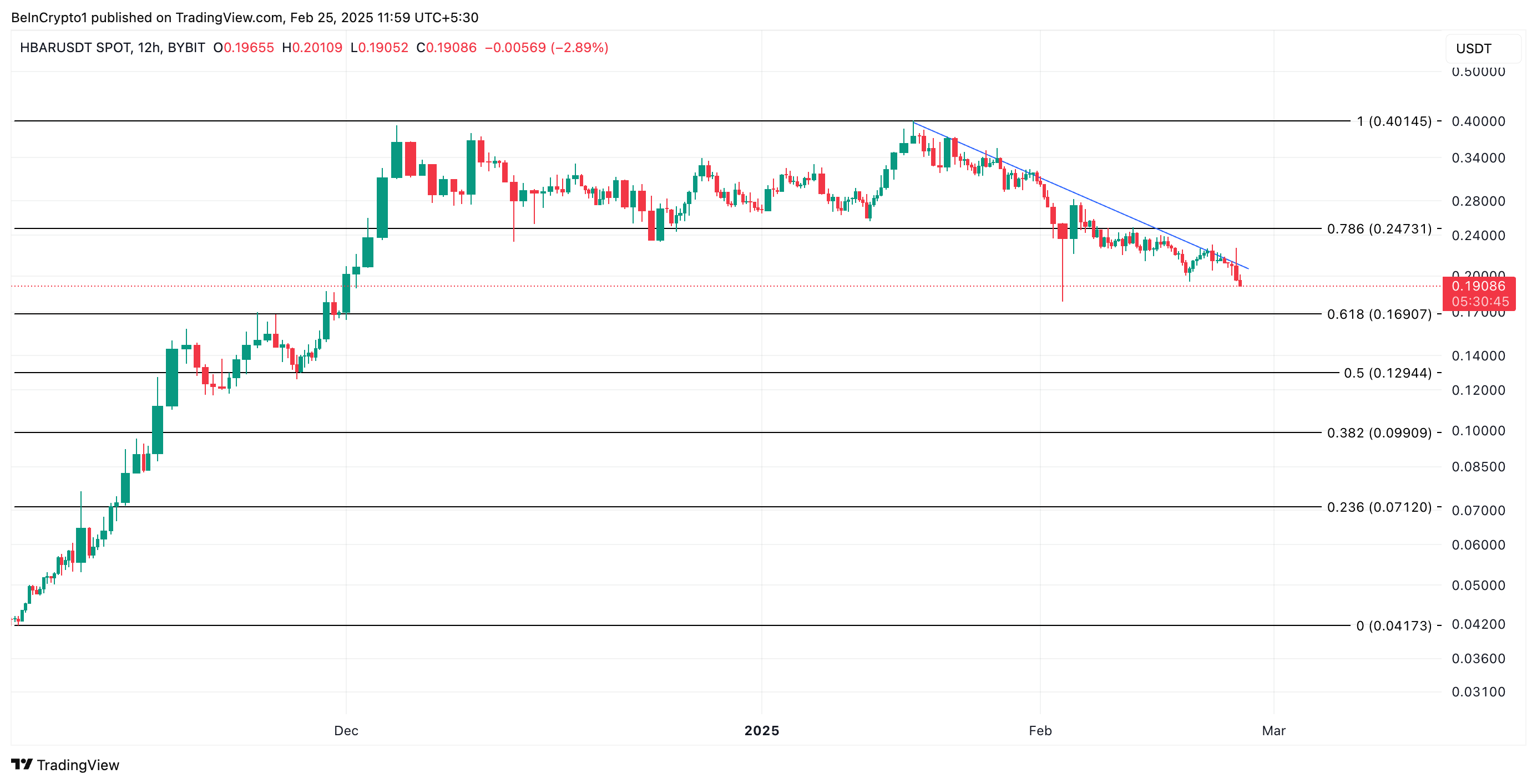 Tämä hintaralli on kuitenkin ollut lyhytaikainen. HBAR:n hinta laski 7 % viimeisen 24 tunnin aikana, ja tekniset indikaattorit viittaavat lisälaskuun, sillä altcoinin kysyntä pysyy heikkona.