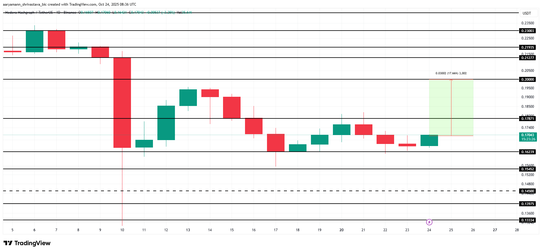 Toisaalta, jos sijoittajat saavat takaisin luottamuksensa ja sijoitukset palaavat, HBAR voi ylittää 0,178 dollaria. Kestävä hintaralli tältä tasolta voisi nostaa tokenin kohti 0,200 dollaria. Tämä merkitsisi potentiaalista 17,6 % nousua ja nykyisen karhumaisen näkymän täydellistä kumoamista.
