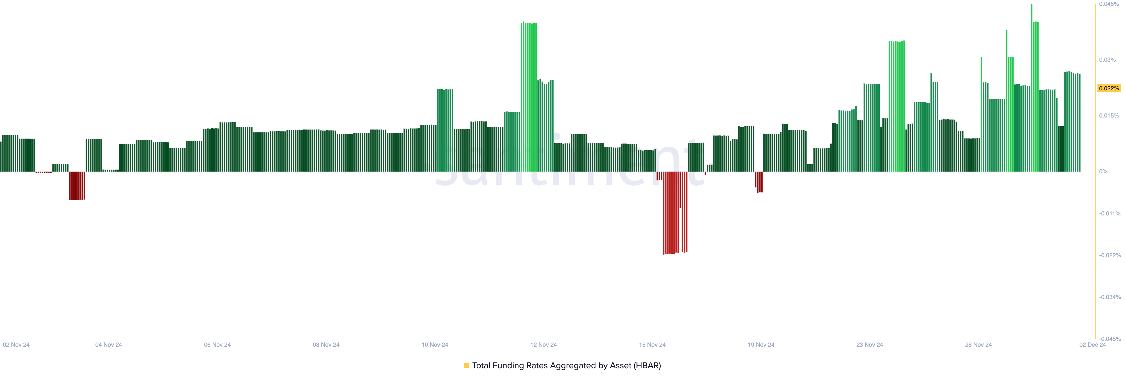 HBAR:n positiivinen rahoitusaste tukee edelleen sen nousujohteista näkymää, ollen tällä hetkellä 0,022 %.