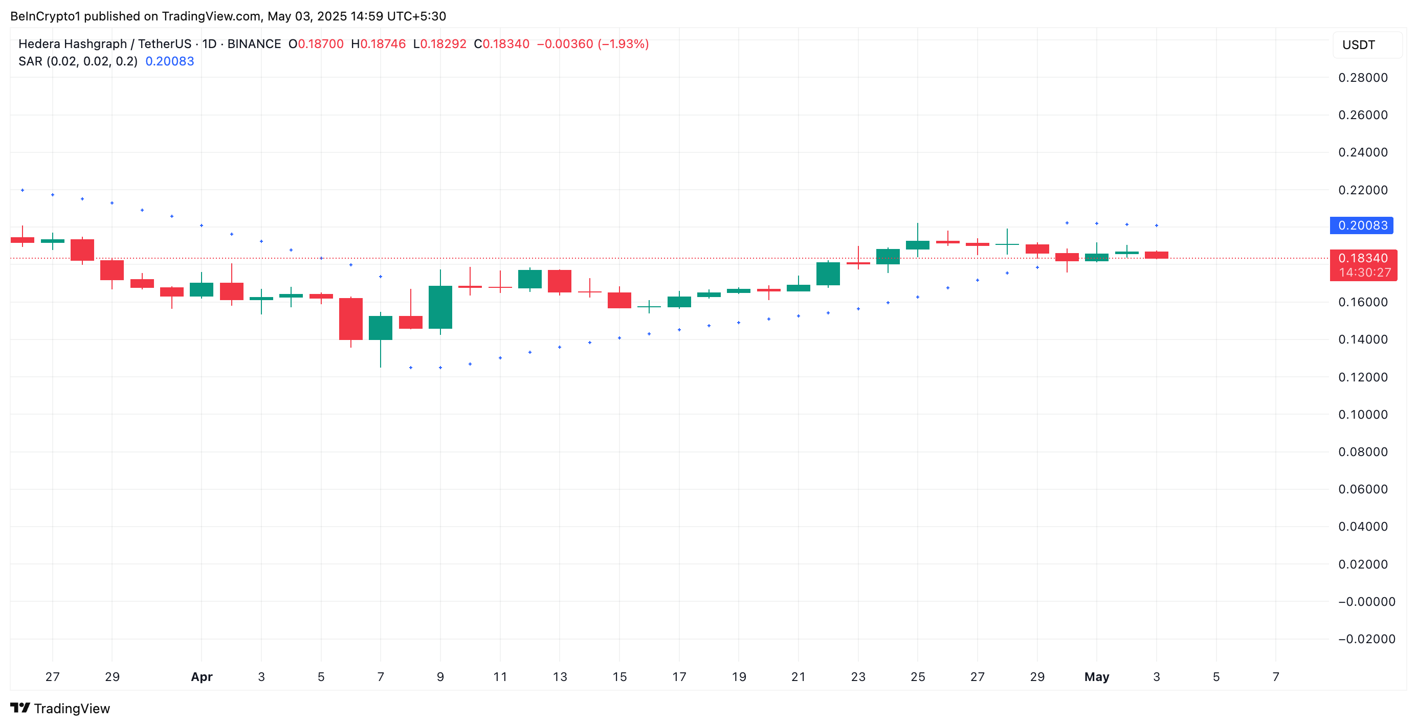 HBAR Parabolic SAR. Lähde: TradingView
