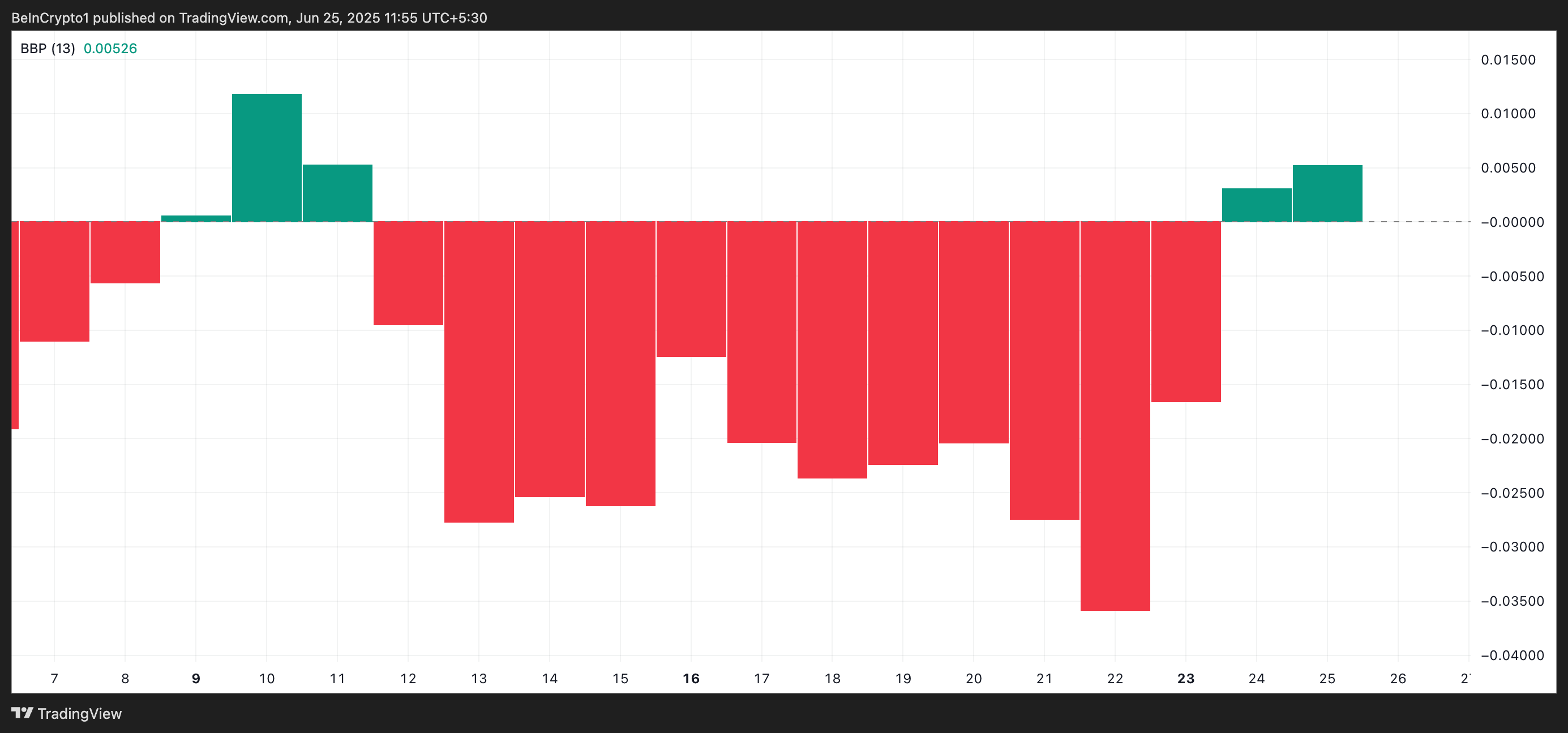 HBAR:n selkeä nousu tämän kynnysarvon yläpuolelle vahvistaisi nousutrendin käänteen, mikä avaisi tokenille mahdollisuuden saavuttaa uusia huippuja tulevina päivinä. Tokenin Elder-Ray-indeksin lukemat tukevat tätä nousunäkymää.