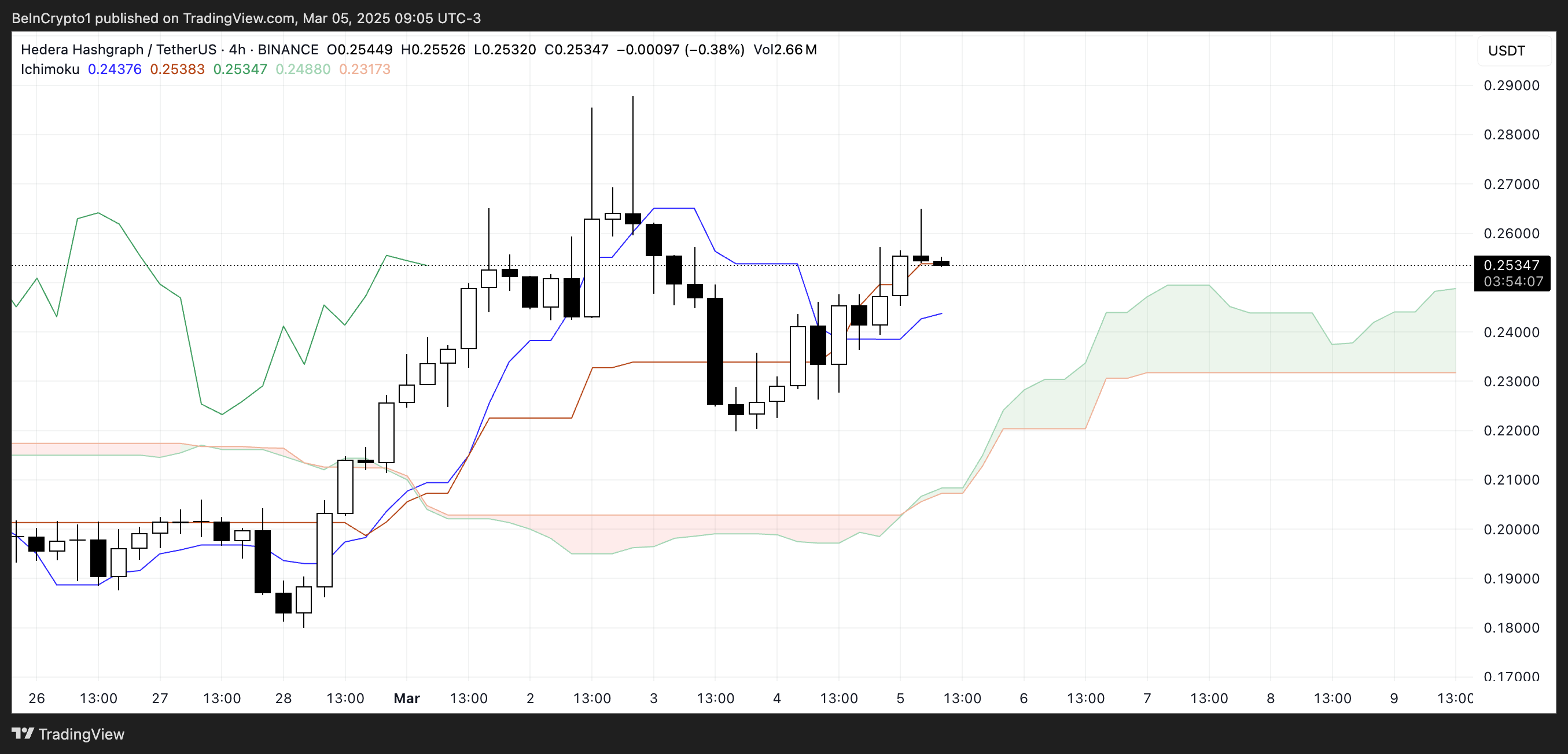 HBAR Ichimoku Cloud näyttää härkäasetelman