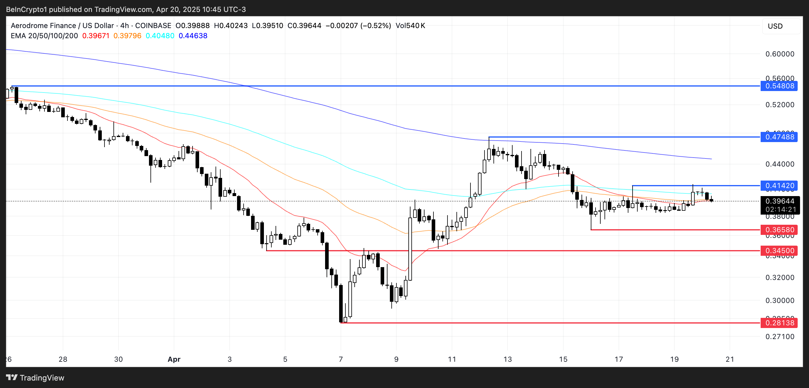 Jos tunnelma palaa, AERO voisi nousta testaamaan vastusta 0,414 dollarissa, ja mahdollinen nousu kohti 0,47 ja 0,54 dollaria, jos hintaralli on vahva.