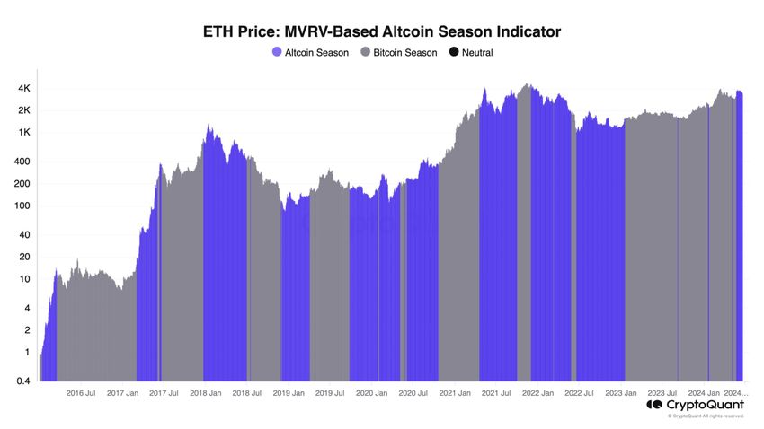 Tämä voi viitata Ethereumin johtamaan altcoin-kauteen, varsinkin kun otetaan huomioon nykyinen ETF-tilanne.