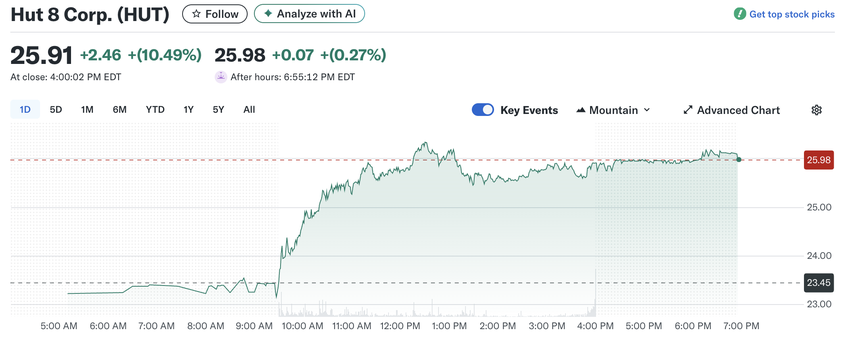 Hut 8 (HUT), bitcoin-louhinta- ja digitaalisen infrastruktuurin yritys, nousi tiistaina julkistettuaan suunnitelmat kaksinkertaistaa teho-kapasiteettinsa neljällä uudella Yhdysvaltain kohteella. Hankkeet, joita tukee 2,4 miljardin dollarin likviditeettikehys, vahvistavat yrityksen roolia bitcoin-louhinnassa ja digitaalisessa infrastruktuurissa.