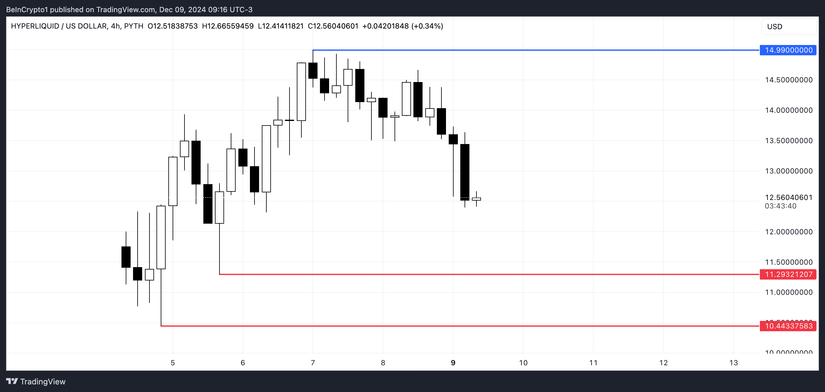 Airdropin jälkeen HYPE hinta koki merkittävän nousun, saavuttaen huipun 14,99 dollaria 7. joulukuuta. Tämä nousu johti konsolidointivaiheeseen, jossa hinta vakiintui, ennen kuin se alkoi laskea vähitellen.