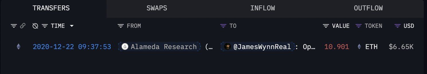 Wynnin kaupankäyntitoiminnan varhaisin merkintä on joulukuulta 2020. Pseudonyymin käyttäjän Star Platinum mukaan kauppias sai tiettävästi 6 000 dollaria Ethereum (ETH)ia Alameda Researchilta, nyt jo lakkautetulta yritykseltä, joka liittyy Sam Bankman-Friediin.