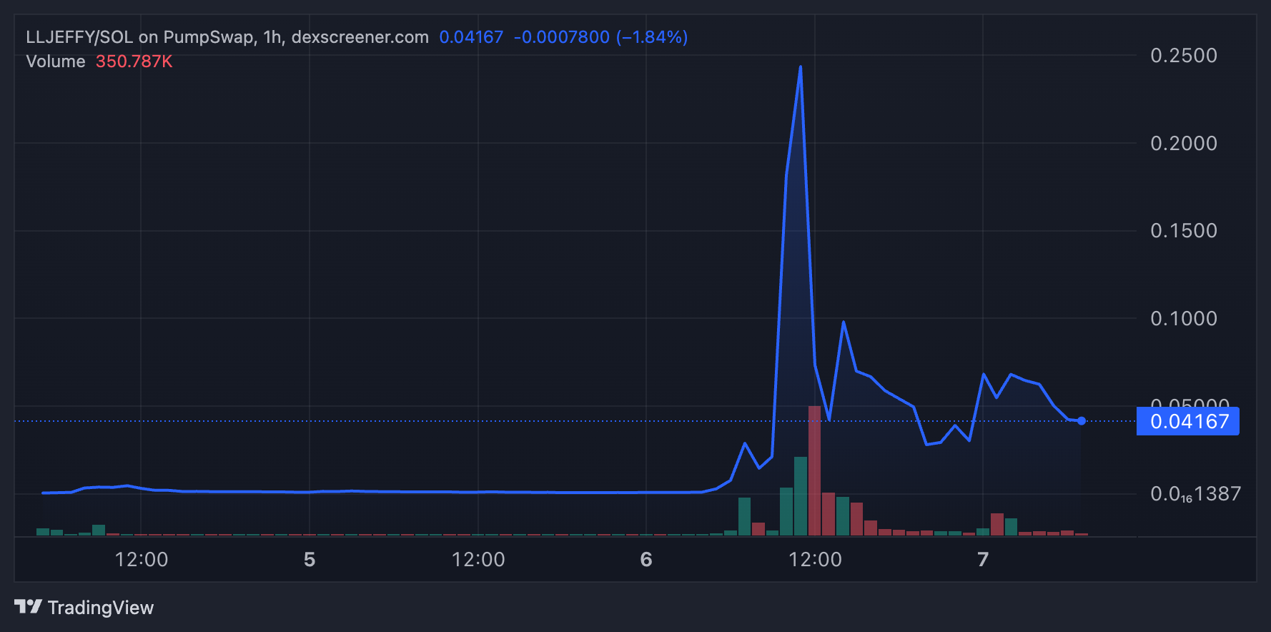 Blogikirjoituksen julkaisun jälkeen siihen liittyvä token LLJEFFY nousi arvossaan. DEXScreenerin mukaan sen markkina-arvo nousi noin 105 miljoonaan dollariin, mikä merkitsi arvonnousua 2 115%.