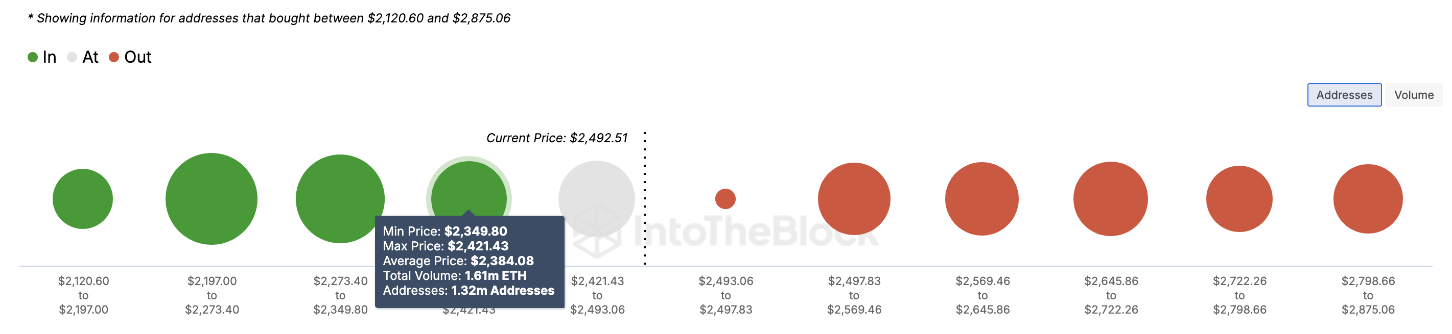 Kuten alla olevasta kaaviosta näkyy, 1,32 miljoonaa osoitetta osti ETH:tä keskihinnalla 2 384 dollaria.