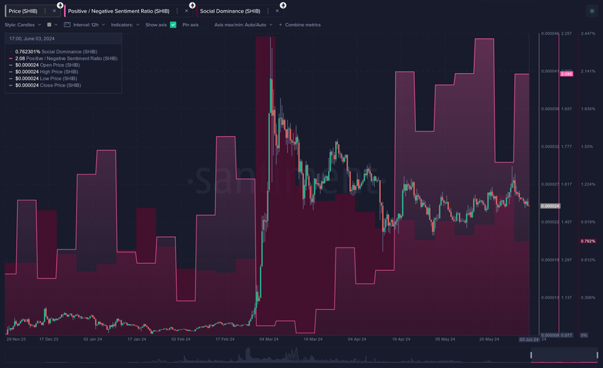 Shiba Inun tapauksessa, joka seuraa Dogecoinia toiseksi suurimpana meemikolikkona, positiivisen ja negatiivisen suhde on 2,09: 1. Tämä jatkuva positiivinen tunnelma seitsemän viikon ajan on huomattava, kun otetaan huomioon, että kolikon hinta ei ole noussut maaliskuun alun jälkeen.