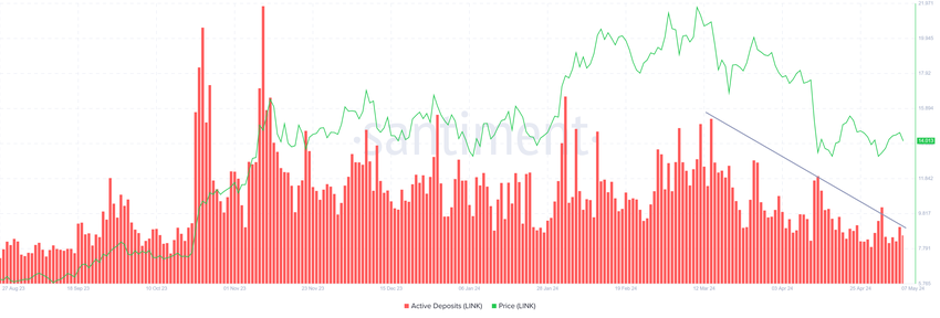 Tämä näkyy aktiivisten talletusten vähenemisenä viimeisen kahden kuukauden aikana. Aktiivisilla talletuksilla tarkoitetaan rahakkeiden liikkumista sijoittajien lompakoista pörssin lompakkoon. Tämä edustaa myyntipotentiaalia.