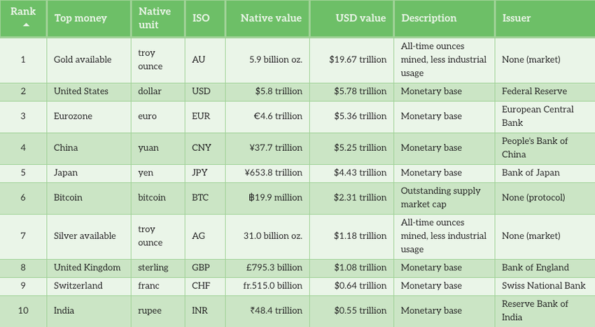 Porkopolis Economicsin mukaan Yhdysvaltain M0 rahaperusta on tällä hetkellä 5,8 biljoonaa dollaria, jota seuraa 5,4 biljoonaa dollaria euroalueella, 5,2 biljoonaa dollaria Kiinassa ja 4,4 biljoonaa dollaria Japanissa. Koska Kiina vastaa lähes 19,5% maailman BKT:stä, PBOC:n politiikkapäätöksillä on merkittäviä vaikutuksia kansainvälisiin pääomavirtoihin, vaikka Fed hallitseekin markkinoiden huomiota.