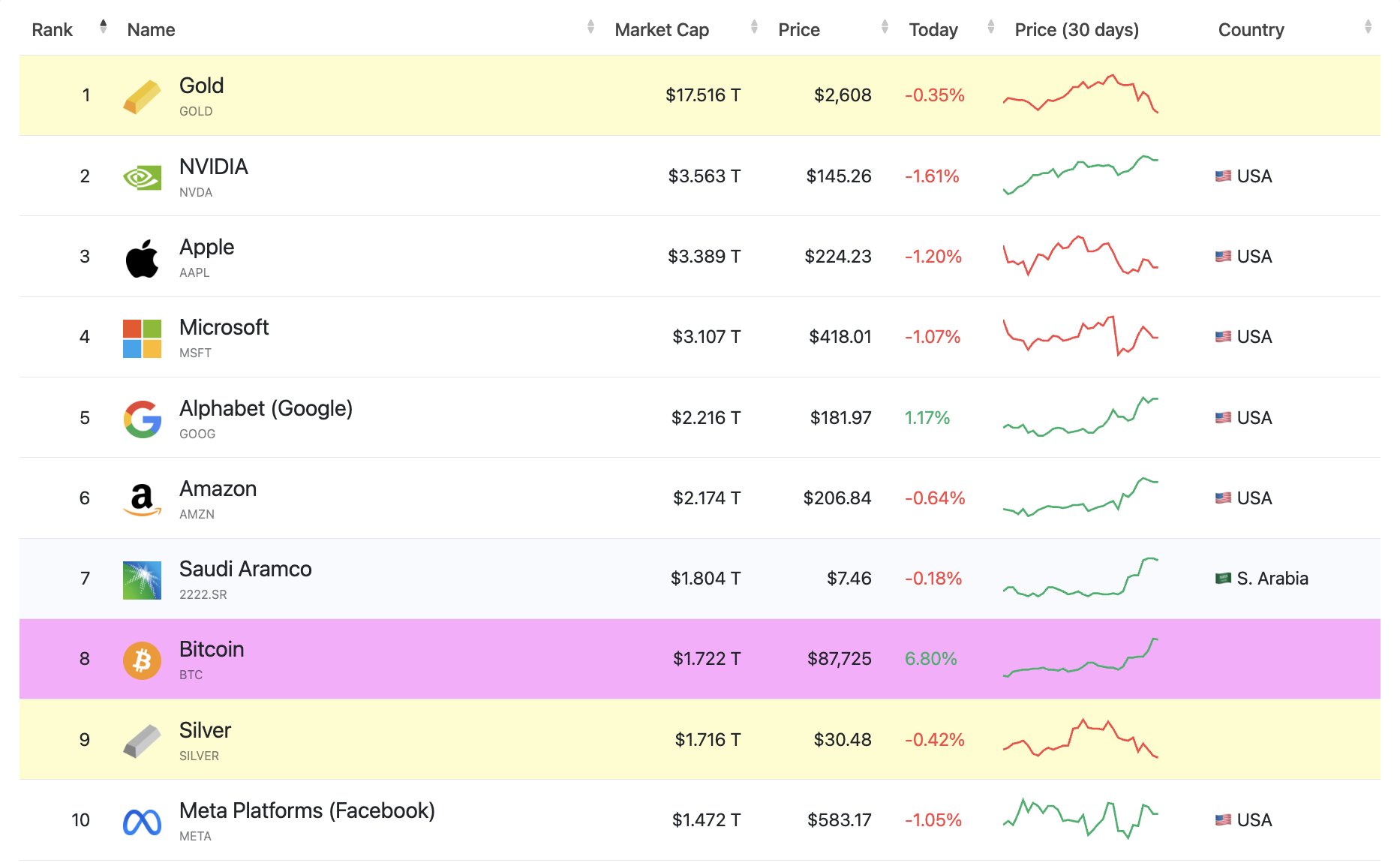 Paras tapa ymmärtää 3,1 biljoonan dollarin merkitys on verrata sitä muiden teollisuudenalojen, omaisuuserien ja sijoitusten arvoihin. Otetaan esimerkiksi jalometallit, kuten kulta. Bitcoinia, arvokkainta kryptovaluuttaa, on kutsuttu “digitaaliseksi kullaksi”.