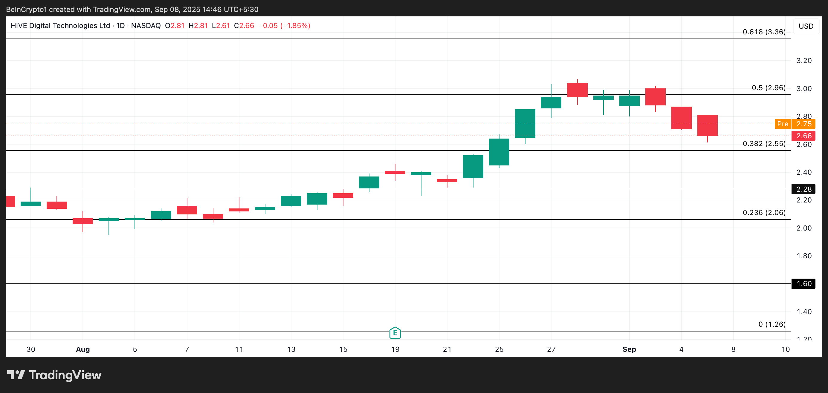 Bitcoin-louhijan osakkeet sulkivat perjantaina hintaan 2,66 dollaria, laskien 7,33%. Vaikka osake sulki alhaisella tasolla, HIVE on kryptosijoitus, jota kannattaa seurata tällä viikolla yhtiön elokuun 2025 tuotantoraportin jälkeen, joka korostaa vahvaa operatiivista suorituskykyä.