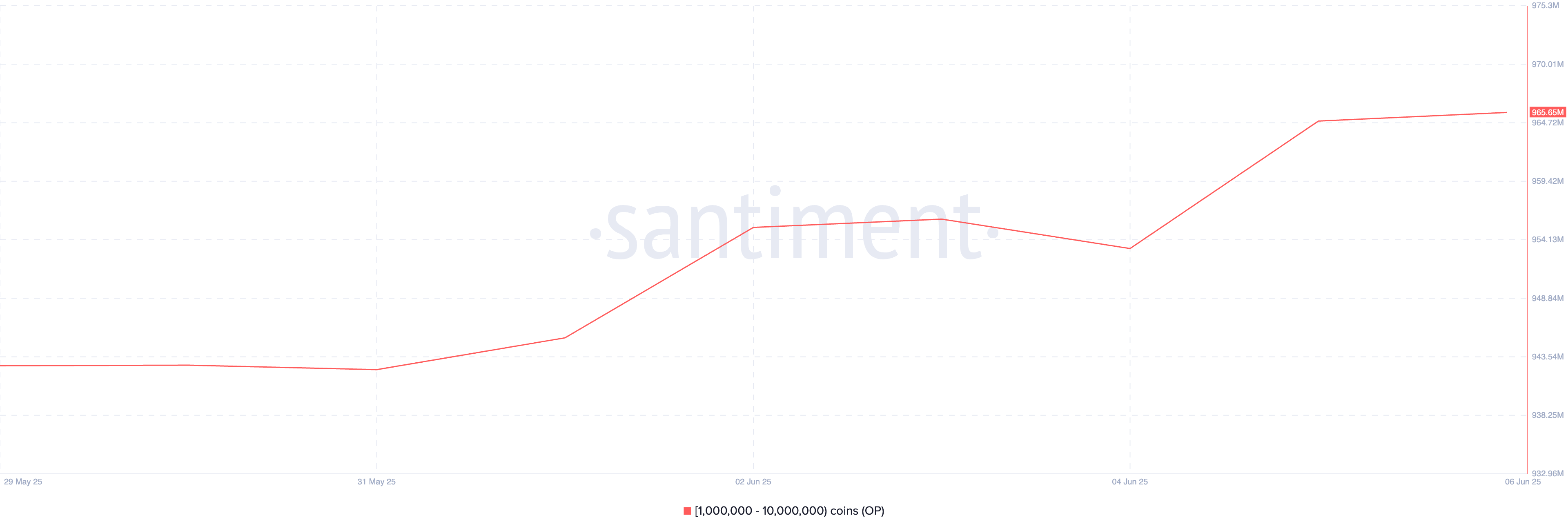 Tämä OP-sijoittajien ryhmä pitää hallussaan 965 miljoonaa tokenia kirjoitushetkellä, mikä on heidän korkein saldonsa viime viikolla. Jos OP-valaat lisäävät keräämistään, sen hinta voisi nousta 0,69 dollariin.