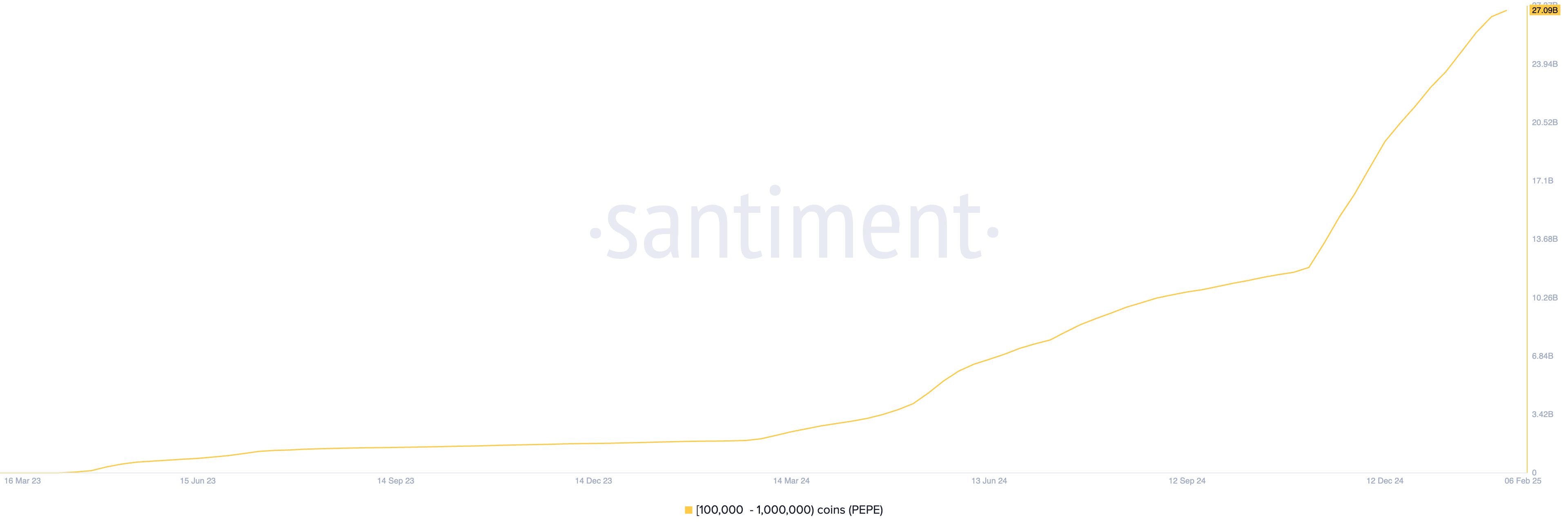 Tämä on nostanut ryhmän PEPE-omistukset kaikkien aikojen korkeimmalle tasolle, 27,09 miljardiin.