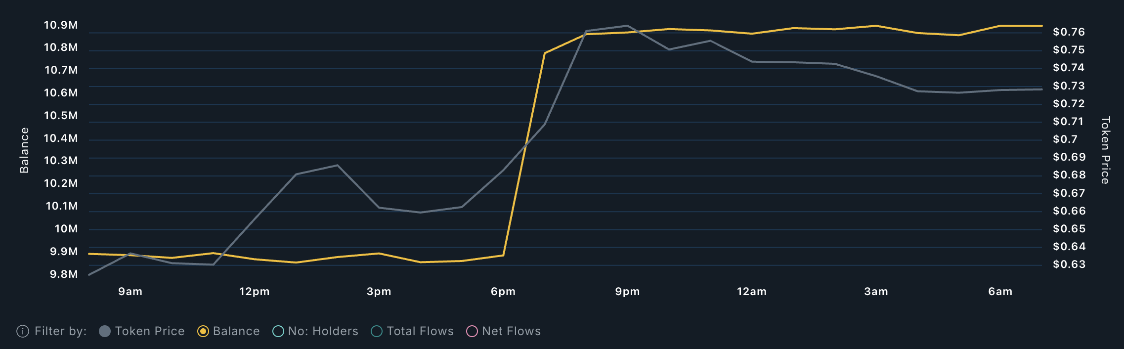 Lisäksi härkien kannalta valasomistusten kasvu AERO:ssa on ollut merkittävää. Vain viimeisen 24 tunnin aikana AERO-tokenien määrä, joita kryptovaluutta-valaat pitävät hallussaan, nousi 9,86 miljoonasta 10,88 miljoonaan—13,66 % kasvu.