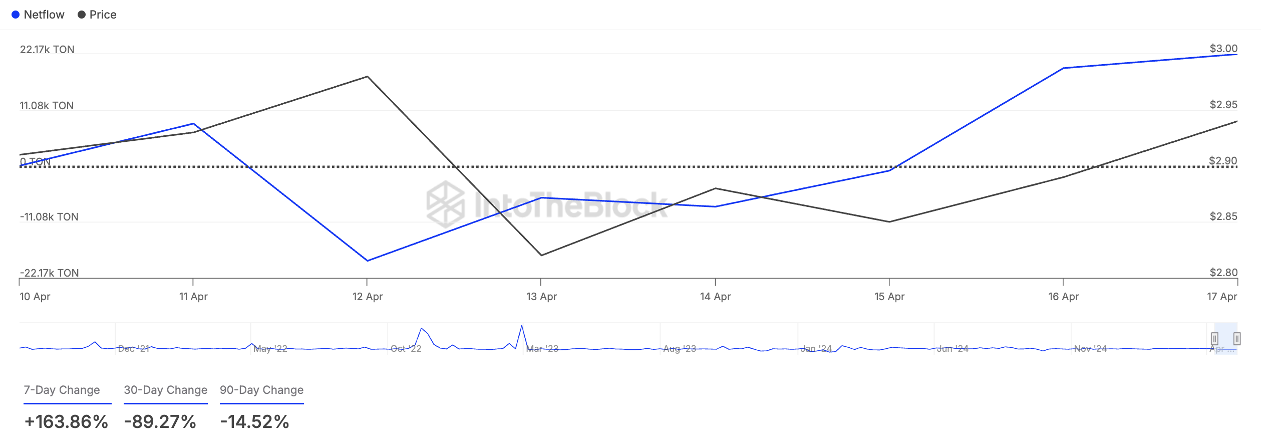 TONin suuret haltijat ovat valaiden osoitteita, jotka pitävät hallussaan yli 0,1 % sen liikkeessä olevasta tarjonnasta. Heidän nettovirtansa seuraa eroa myytyjen ja ostettujen tokenien määrän välillä tietyn ajanjakson aikana.