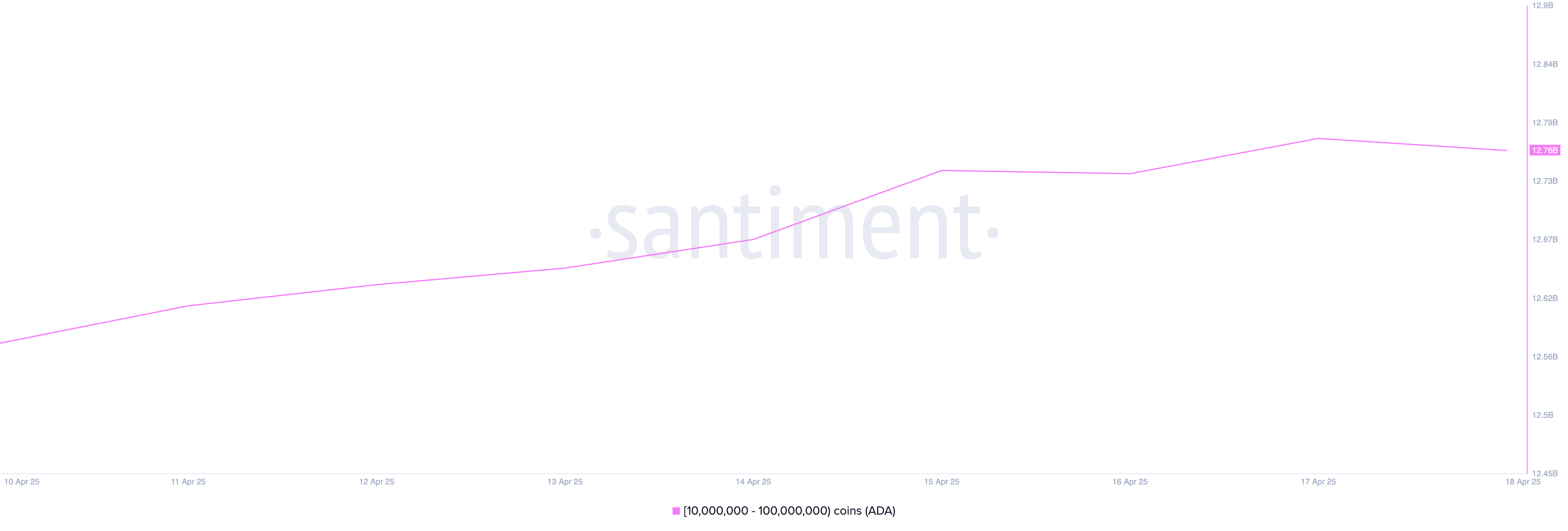On-chain-tietojen tarjoajan mukaan viimeisen seitsemän päivän aikana tämä ADA-valaiden ryhmä on ostanut 190 miljoonaa kolikkoa, joiden arvo on noin 2,40 miljardia dollaria nykyisillä markkinahinnoilla.