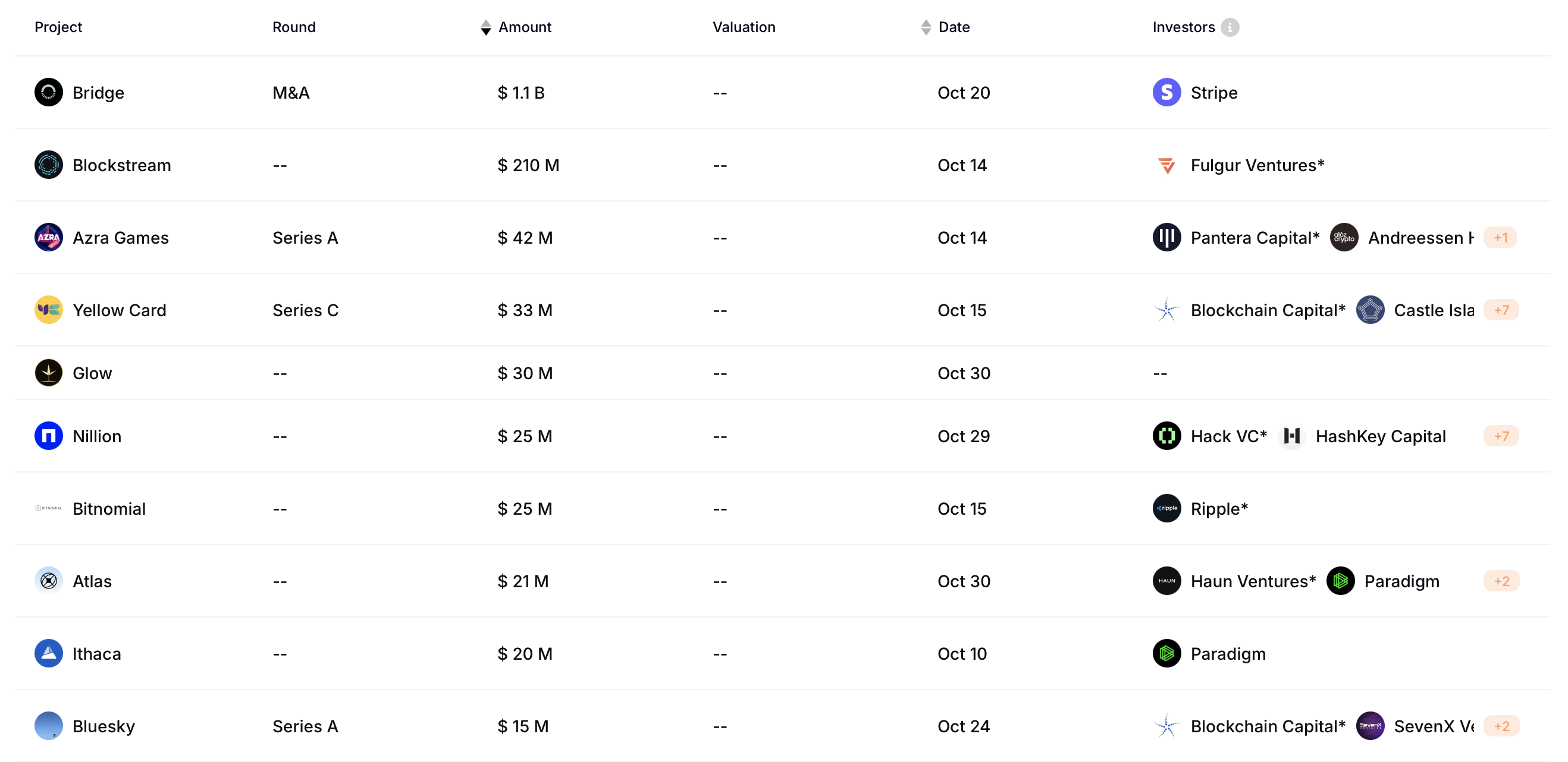 Lokakuun suurin rahoitustapahtuma oli Blockstreamin 210 miljoonan dollarin kierros, jonka johti sijoitusyhtiö Fulgur Ventures. Varat tukevat Blockstreamin Layer-2-teknologioiden käyttöönottoa ja louhintatoimintojen laajentamista.