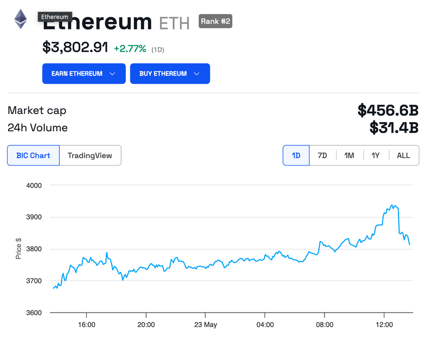 Näiden ETF:ien hyväksyntää pidetään nousevana tunnelmana laajemmille kryptomarkkinoille. Viimeisen 24 tunnin aikana ETH:n arvo on noussut lähes 7 % lähestyen 4 000 dollarin rajaa. Analyytikot uskovat, että myöntävä paikka Ethereum ETF:t voivat nostaa omaisuuserän uusiin korkeuksiin tulevina viikkoina.