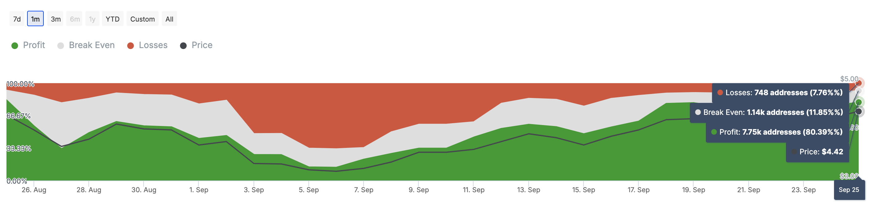 IntoTheBlockin mukaan 7 750 osoitetta edustaa 80,39 % kaikista ZRO:n omistajista, jotka ovat nyt voitolla. 11,85 %, noin 1 140 osoitetta, on saavuttanut tasapainopisteen, kun taas vain 7,76 % pitää ZRO:ta tappiolla.